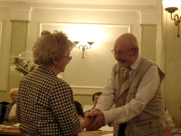 przekazał miłą wiadomość o nadaniu kol. Elżbiecie Jaworskiej Honorowego