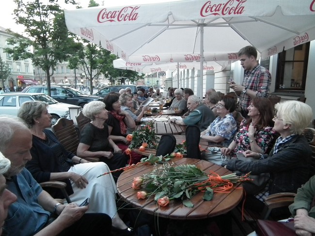 Po koncercie siedzieliśmy długo na zewnątrz, przed budynkiem Resursy, wypełniając cały ogródek, ze 40 osób…