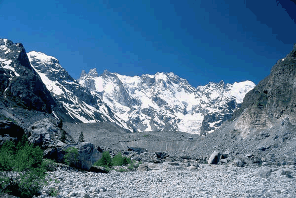 dolina Szeldy - na dole widać ścianę czołową lodowca