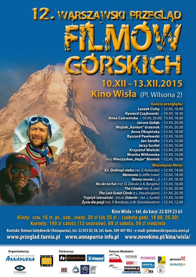 13 maja 2015 (środa) - godz.11,oo ... temat: "INDIE" zapraszamy do pięknej sali w Bielańskim Ośrodku Kultury przy ul.Goldoniego 1 (za Wolumenem). 28.IV.2015 r. SKT poleca ... ![]() 26.IV.2015 r. Informacja z ostatniej chwili... W sobotę 25 kwietnia 2015 r. podczas uroczystości na Kasprowym Wierchu, prezydent RP Bronisław Komorowski wręczył ordery i odznaczenia sportowcom i ludziom zasłużonym w popularyzowaniu sportów min. wspinaczkowych. Na uroczystości Prezydent powiedział: „to radość, wręczać odznaczenia ludziom gór w najpiękniejszym prezydenckim pałacu świata, jakim są Tatry. Góry uczą pokory i wielkości. Uczą marzeń o rzeczach wielkich i pięknych.” Prezydent podkreślił, że zaproszenie go wraz z małżonką, przez ludzi gór na Kasprowy Wierch traktuje jako zaproszenie do kręgu przyjaciół ludzi gór. Za wybitne zasługi dla rozwoju sportów wysokogórskich, za promowanie imienia Polski w świecie, odznaczeni zostali: KRZYŻEM OFICERSKIM ORDERU ODRODZENIA POLSKI JÓZEF NYKA KRZYŻEM KAWALERSKIM ORDERU ODRODZENIA POLSKI pośmiertnie MACIEJ BERBEKA ZŁOTYM KRZYŻEM ZASŁUGI KINGA BARANOWSKA Po uroczystości, na Kasprowym Wierchu odprawiona została msza święta, w której uczestniczyła nasza koleżanka Anna Dubrawska-Skalska Serdecznie gratulujemy wszystkim odznaczonym, a szczególnie odznaczenia dla kolegi Józefa Nyki, Członka Honorowego SKT, niestrudzonego popularyzatora historii polskiego alpinizmu oraz ludzi gór. Życzymy zdrowia i dalszych lat pięknej działalności i pamiętamy o wcześniejszych Twoich sukcesach górskich. 23.IV.2015 r. Informacja W czwartek 30 kwietnia 2015 r. nie będzie czynny Terenowy Referat Weryfikacyjny GOT i nie będą przyjmowane składki klubowe 23.04.2015 r. 13.IV.2015 r.