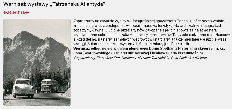 20.IX.2015 r. Na stronie SKT... W dniach od 11 czerwca do 24 sierpnia 2015 r. mieliśmy okazję podziwiać wystawę grafik Jana Szarana zatytułowaną "MOJE BAZGROŁY - cerkwie i kościółki Beskidów" zorganizowaną wspólnie przez Stołeczny Klub Tatrzański i Warszawski Klub Górski im.prof. Walerego Goetla w sali ZG PTTK w Warszawie przy ul. Senatorskiej 11. 16.IX.2015 r. SKT poleca... Nasi koledzy w Kalinowym Sercu