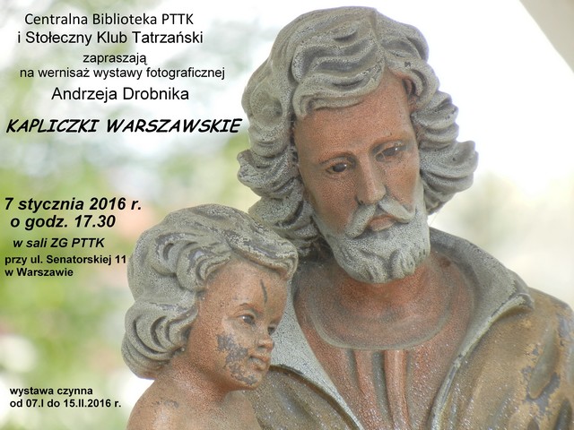 W czwartek 7 stycznia odbył się w SKT wernisaż wystawy fotograficznej Andrzeja Drobnika zatytułowanej "KAPLICZKI WARSZAWSKIE". Fotoreportaż z tego wydarzenia i kilka prac autora zamieściliśmy w dziale "do popatrzenia"