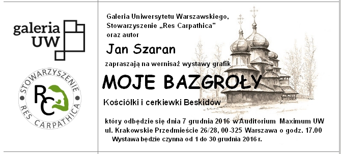 Przypominamy, że pierwszą wystawę grafik Jana Szarana z cyklu „MOJE BAZGROŁY - kościółki i cerkwie Beskidów” zorganizował Stołeczny Klub Tatrzański w 2015 r.