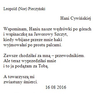 Żegnaj Drogi Leszku Koleżanki i Koledzy ze Stołecznego Klubu Tatrzańskiego |