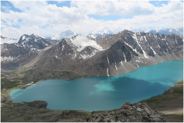 Widok z przełęczy Ala Kul na jezioro o tej samej nazwie