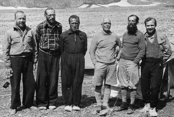 turyst-2-od-lewej-Janusz-Klarner,-Jakub-Bujak,-Adam-Karpinski,lekarz-dr-J_R_Foy_-oficer-lacznikowy-major-S_Blake-Stefan-Bernadzikiewicz-fot