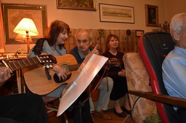 Pokazaliśmy się z dobrej strony. Uczestników było więcej niż kiedykolwiek na „prawdziwych” imieninach. Każdy przyniósł coś co jedzenia, ale nie byle co kupione w lokalnym sklepie, tylko starannie wykonane, pracochłonne własne dania. Tu można powiedzieć, że przedobrzyliśmy, ale każdy chciał jak najlepiej. Jeżeli chcemy kogoś uczcić, warto to zrobić, poświęcając mu własną pracę. Taka postawa zawsze podobała mi się najbardziej. Potem nastąpił pokaz starych slajdów; może trochę za długi, bo zabrał czas z ostatniej części programu, gdzie śpiewanie mieszało się ze wspomnieniami, rozmowami o Wszystkim. Nie udało się uciec od przeszłości – zresztą chyba nikt nie chciał. „O, tu siedziała Ela Wojnowska i śpiewała Wysockiego”, a tu Joanna, tam ktoś jeszcze… Jak to się mówi: tempus fugit, a czas leci.