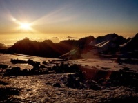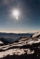 Tymczasem z Nido de Condores (obóz 1 na wys. ok. 5500 mnpm) widać zachody słońca, zachodzącego w Oceanie Spokojnym, widać także wieczorem łunę nad Santiago de Chile. Co noc kierunek wyznacza nam Krzyż Południa - gwiazdozbiór niewidoczny na naszej półkuli.